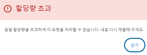 열심히 블로그 글 url을 하나하나 복사 붙여 넣기 해서 말 그대로 수동으로 색인 요청 중 "일일 할당량을 초과하여 이 요청을 처리할 수 없습니다. 내일 다시 제출해 주세요."라는 경고 메시지가 뜬 것이다. 어떻게 해야 할까?